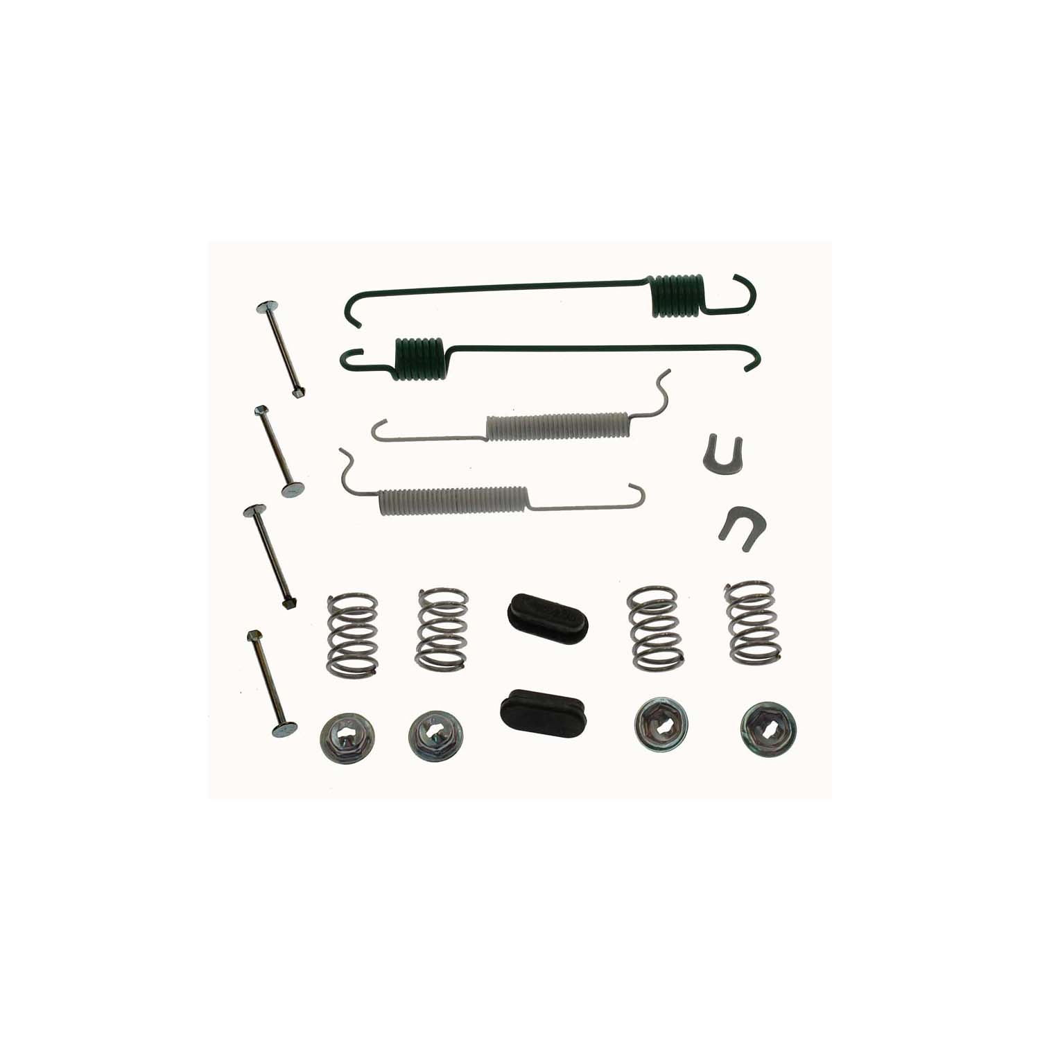Hardware consists of a variety of parts designed to assist in restoring your brake system such as, Anti-rattle clips, seals, pins, and dust boots along with drum shoe return springs, hold down springs, and adjuster assemblies, help to maintain consistent, balanced braking. Change your hardware with the brake shoes to ensure maximum performance. Industry experts agree - When brake friction materials are ready to be replaced, the hardware should also be replaced.