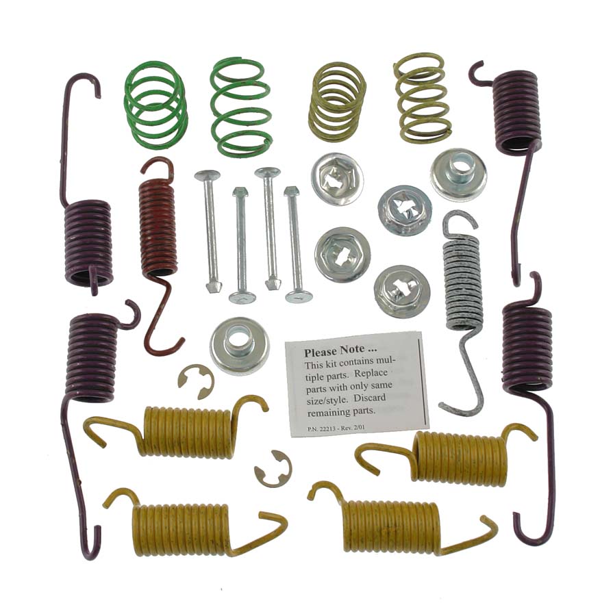 Hardware consists of a variety of parts designed to assist in restoring your brake system such as, Anti-rattle clips, seals, pins, and dust boots along with drum shoe return springs, hold down springs, and adjuster assemblies, help to maintain consistent, balanced braking. Change your hardware with the brake shoes to ensure maximum performance. Industry experts agree - When brake friction materials are ready to be replaced, the hardware should also be replaced.